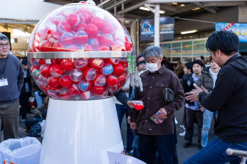 選手サイン入りTシャツなどの景品が当たる巨大ガシャポン