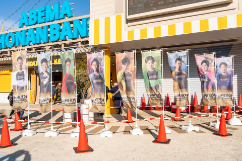 GPシリーズ最終日、正門横ののぼり旗は、KEIRINグランプリ出場選手に