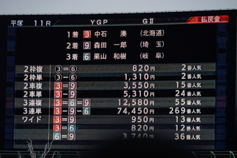 追い上げた森田一郎(埼玉)に1/2車身差を付け、中石湊(北海道)がヤンググランプリ制覇