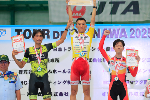ライバル栗山選手、2位の岡選手とお互いの健闘を称える