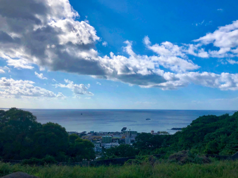ホテルからの美しい空と海。「明日はこの風景を見てる余裕はないだろうな〜...」