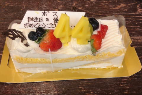 44歳の誕生日と優勝を祝うケーキをいただき、感激