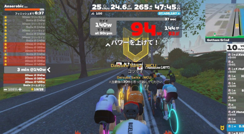 ある日のVO2MAX向上委員会のZwiftワークアウトにて