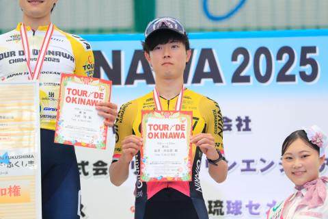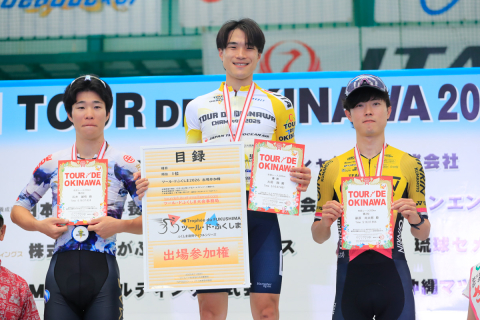 画像 市民200km表彰 優勝大前翔(Roppongi Express)、2位石井雄悟(MASXSAURUS)、3位畝原尚太郎(チームGINRIN熊本) photo:Makoto AYANO 2025/11/10 - 18:20