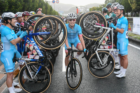 選手達が引退する入部正太朗(シマノレーシング)に花道を作る