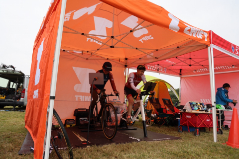 ズイフトブースではスマートバイクやスマートトレーナーの試乗会が行われた