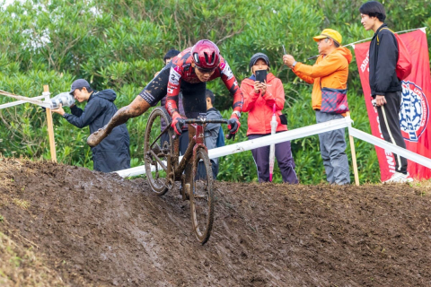 マッドコンディションが得意な沢田時(Astemo 宇都宮ブリッツェン)が後続とのリードを広げていく