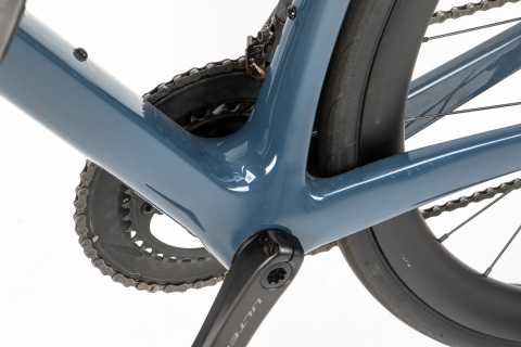 横剛性を高めたボトムブラケット周り。ハンガー下がりも減少し加速感を軽やかに