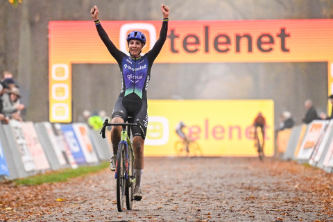 かつて父が9回獲得したベルギーチャンピオンジャージの初披露となったティボー・ネイス(ベルギー、バロワーズ・グローウィ・ライオンズ)