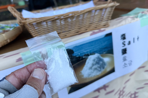 脚攣り防止のミネラル補給にまーす(塩)の小袋が嬉しい
