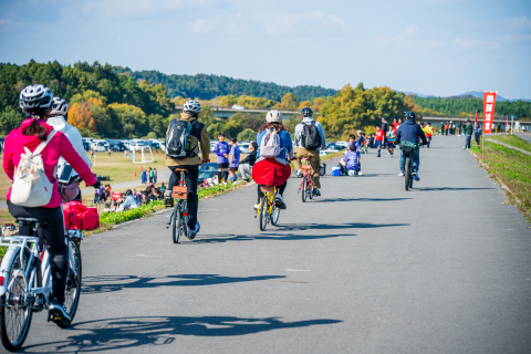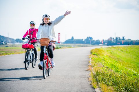 那珂川沿いノサイクリングロードは広々としていて走りやすい!