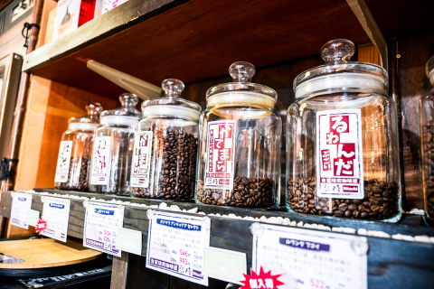 ずらり珈琲豆が並んでいました。もちろんお酒もあります笑