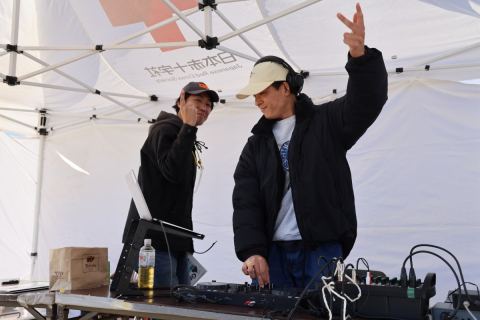 チームユーラシア-iRCタイヤのファンが駆け付け、選手たちにエールを贈る