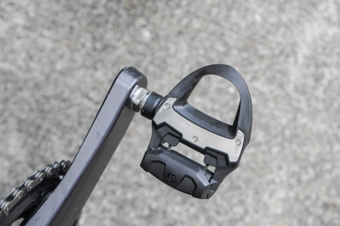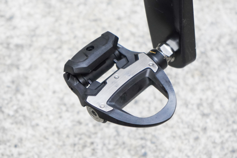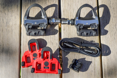 ペダルにはクリートと充電アダプタ&ケーブルが付属する