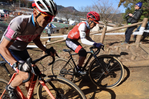画像 M60-64の羽鳥和重(cycleclub3UP.)とM65-69の増田謙一(SHIDO-WORKS)が横一線で三段坂を駆け上がる photo:Michinari TAKAGI 2025/12/06 - 22:29