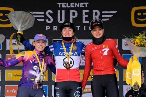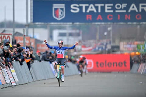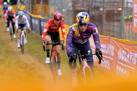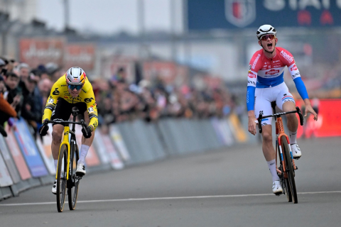画像 ワウト・ファンアールト(ベルギー、ヴィスマ・リースアバイク)とティボール・デルフロッソ(オランダ、アルペシン・ドゥクーニンク)が先頭グループを組む photo:CorVos 2025/12/24 - 10:46