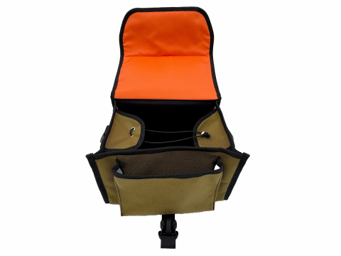 前面にはマチのあるオープンポケットがあり、小物などが分けて収納可能