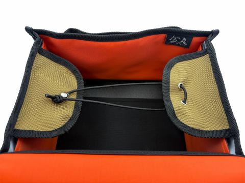上蓋にはジッパー付きのポケットが備わる
