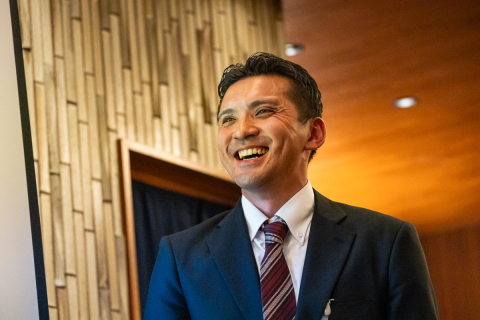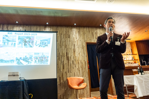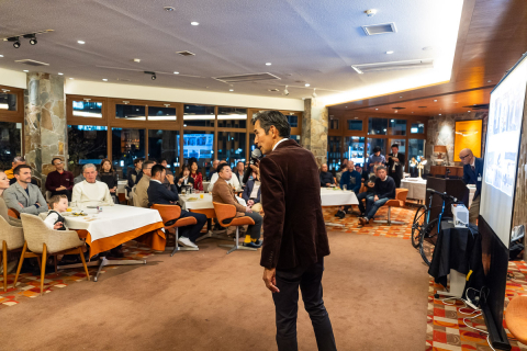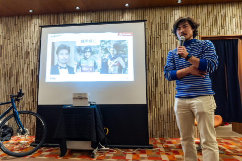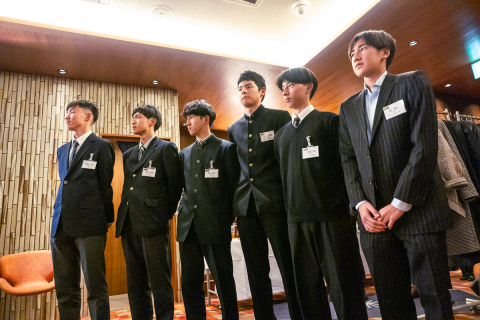 画像 真剣な表情で渡邊理事長の激励を聞く選手達。左からEQADSの新藤大翔、埼玉ユース自転車部の荒木景虎、向井佑太、三浦壮悟、高倉緯、稲寛太 photo: Yuichiro Hosoda 2025/12/25 - 13:49