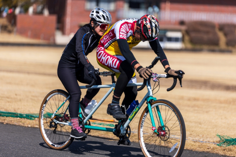開会式には大会シンボルアスリート杉浦佳子(総合メディカル/TEAM EMMA Cycling)、そしてゲストライダー藤田征樹(藤建設株式会社)や官野一彦(ダッソー・システムズ株式会社)とともに、開催地元在住の元マラソンランナーで日本パラスポーツ協会理事の増田明美氏も登場!日本初のインクルーシブ自転車大会の門出に立ち会った(左から順に杉浦、藤田、官野、増田)