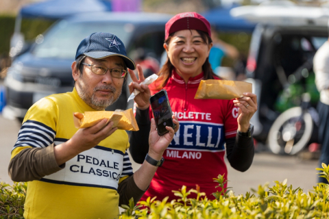 開会式後に集合写真!これから笑顔で自転車レースを楽しむ気合の入った参加者の皆さん