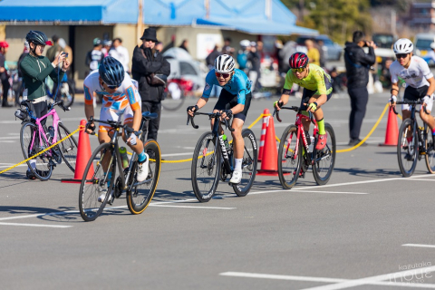 しばらくは集団が1つであったが、田中(写真右)と小館(写真中央)がアタックし集団から抜け出す