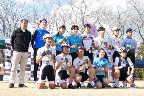 画像 岡本の力強い走りを支えているアスリチューンの栄養補助食品。今回は岡本お気に入りのポケットエナジー・グレープ味を株式会社 隼から特別ダブルセットとして授与されご満悦! photo:QNリーグ事務局 2026/03/10 - 15:38
