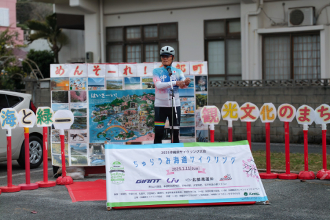 本部町観光協会 会長・當山清博氏が歓迎の挨拶©ちゅらうみ海道サイクリング2026