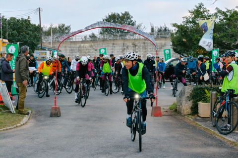 サイクリングリーダーの引率によりスタートしていく©ちゅらうみ海道サイクリング2026