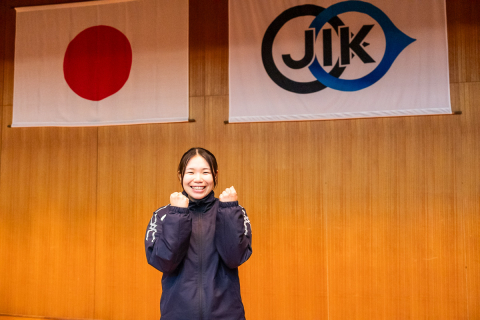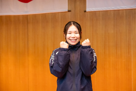 自分らしいガッツポーズで、のリクエストに応えてくれた古山稀絵候補生