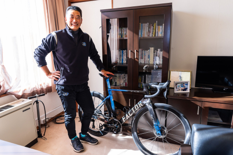 選手引退後に手に入れたと言うファクターOSTRO VAM 2.0を見せてくれた神山雄一郎所長