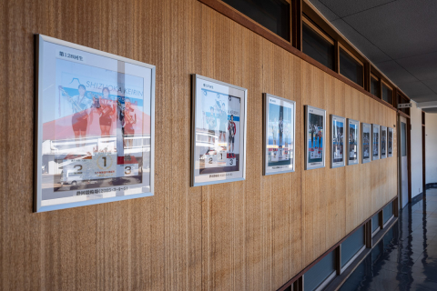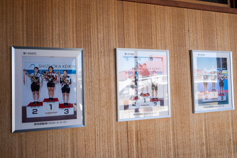 廊下に並ぶ卒業記念レースの表彰写真。トップ3に入ればここに自身の姿を連ねることに