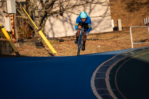 森下龍之介候補生がバンクを駆け下りる
