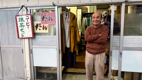 大島紬図案士&画家の重村敏光さんのアトリエ兼喫茶店「だんだん」にて