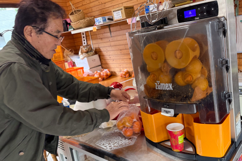 ポンカン4こ百円。軽トラの荷台で無人販売するスタイル