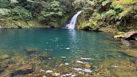 湯湾岳周辺の森を流れる渓流は澄み切っていた