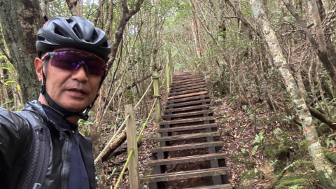 湯湾岳へと登る木道。歩けるバイクシューズなら問題ない