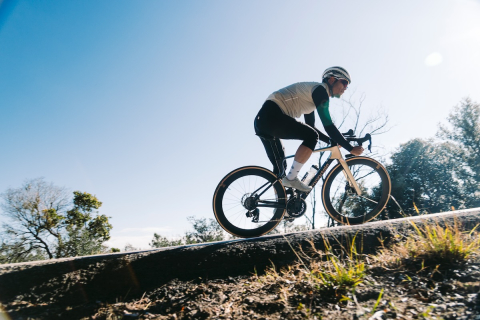 勢いをつけてアウターで駆け上がるような勾配はSuperSix EVOの真骨頂。小気味良いリズムで登りをこなせた