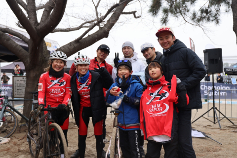 WE2を制した江越未稀(VAPOR CX TEAM)と家族、チームメイトの皆さん
