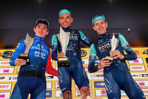 画像 ティベーリと共にワンスリーフィニッシュを決めたサンティアゴ・ブイトラゴ(コロンビア、バーレーン・ヴィクトリアス) photo:Trofeo Laigueglia 2026/03/05 - 08:06
