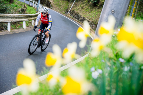 CADEX MAX50は軽いがしっかりとしている。フレーム・タイヤとの相性だろうか嫌な硬さは感じなかった。下りではあっというまにスピードが上がるphoto:Sterling Lorence/GIANT