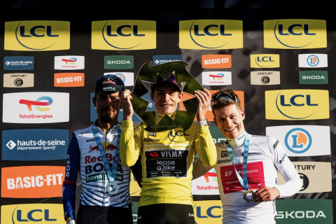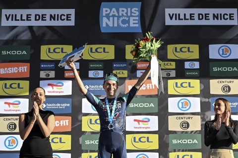 ようやくパリ〜ニースで総合優勝を決めたヨナス・ヴィンゲゴーハンセン(デンマーク、ヴィスマ・リースアバイク)