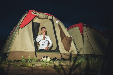 第1ステージ前夜はテントでの宿泊となり、十分な睡眠が取れないなかで迎えた朝6時30分スタート