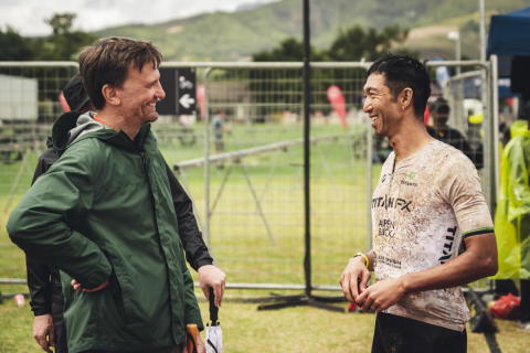 走り終えてお互いを称え合う山本幸平とリアッド・ハキム