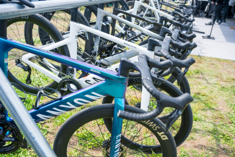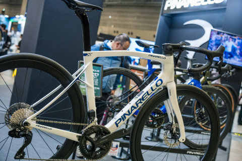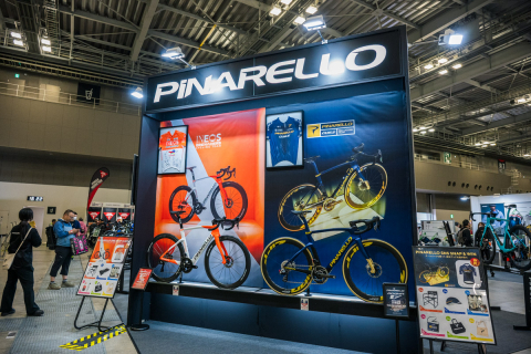 会場入って最初に目に入ってくるのはやはりピナレロ。今年供給するイネオス・グレナディアーズとQ36.5の2チームをテーマにした展示だ