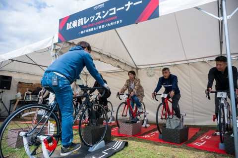 初めてスポーツバイクに乗る方も安心できる試乗前レッスンコーナー