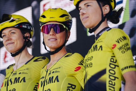 ニエウィアドマから祝福を受けるデミ・フォレリング(オランダ、FDJユナイテッド・スエズ)