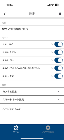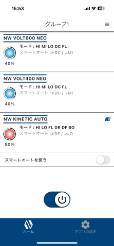 ペアリングしているライトが表示される(ここで電源のオン・オフも行える)
