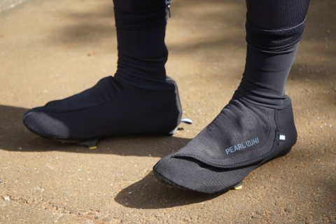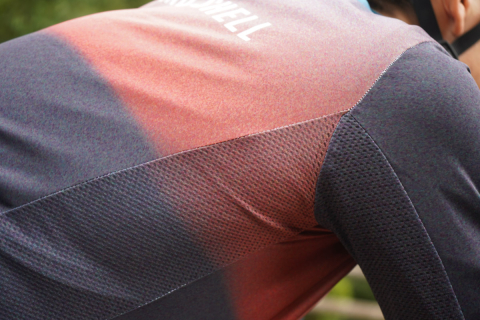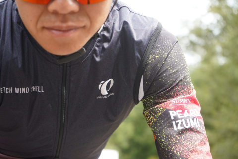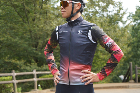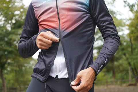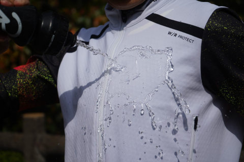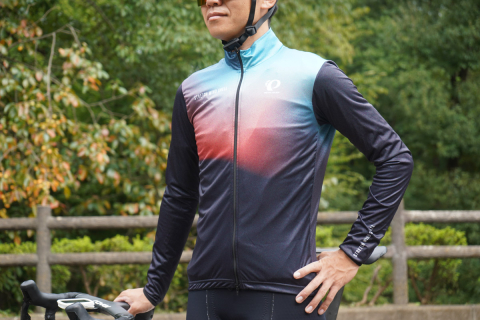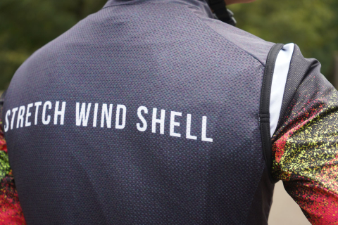 ストレッチ性と防風性を兼ね備えたシェル素材を採用する