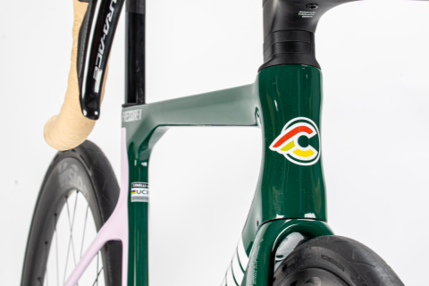 前輪とダウンチューブの距離を近づけエアロを高めている(c)ポディウム